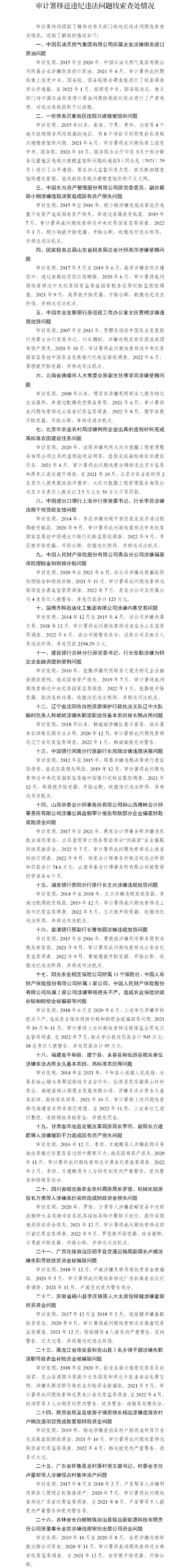 审计署网站发布《2022年第2号公告:审计署移送违纪违法问题线索查处情况》。案例供审计人员关注: